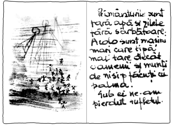 Acolo sunt mașini mari, care țipă mai tare ca oamenii, și munți de nisip făcuți cu palma.